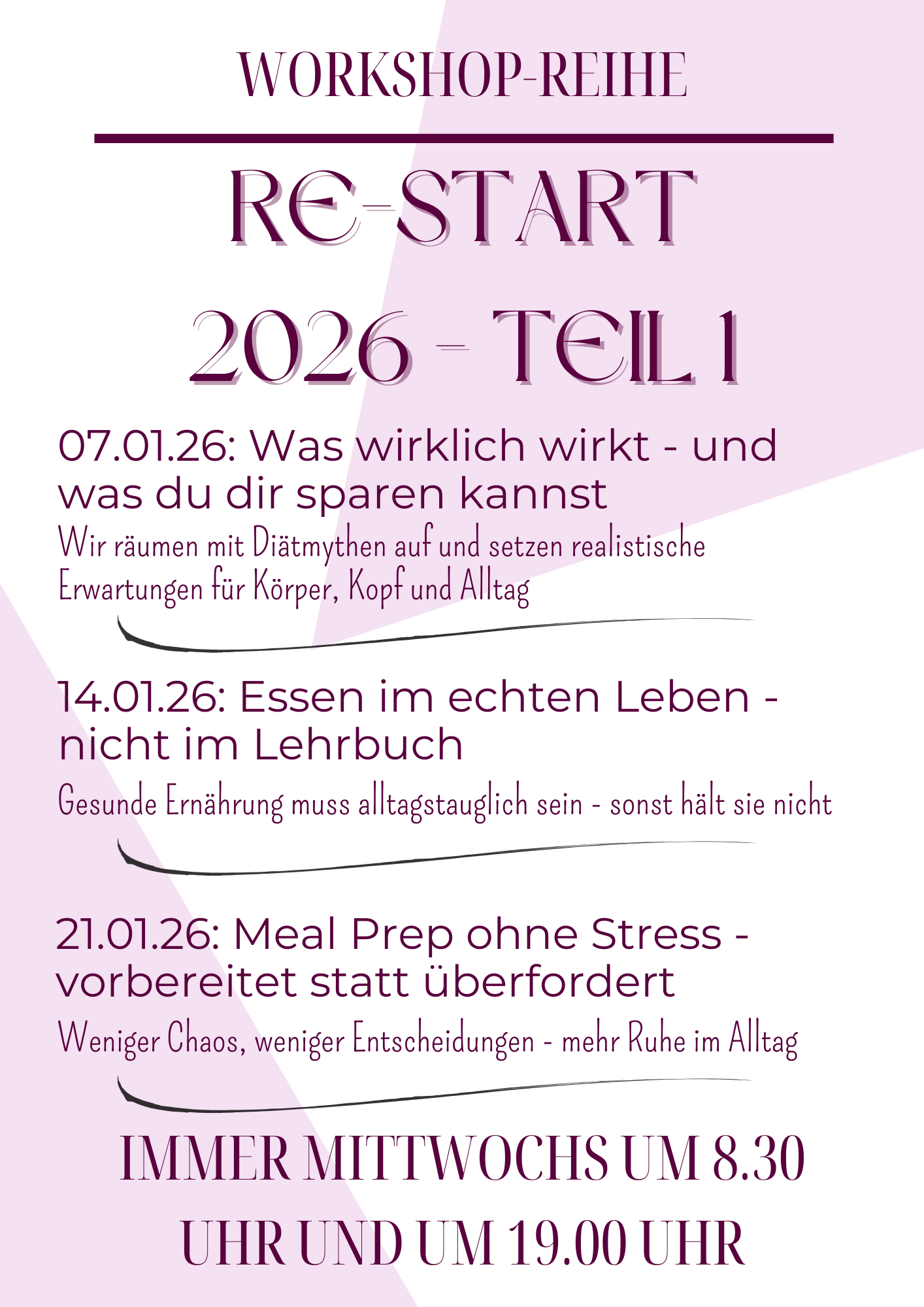 In dieser 6-wöchigen Workshop- & Vortragsreihe geht es nicht um Diäten, Verbote oder Perfektion, sondern um Verstehen, Umsetzen und Dranbleiben.