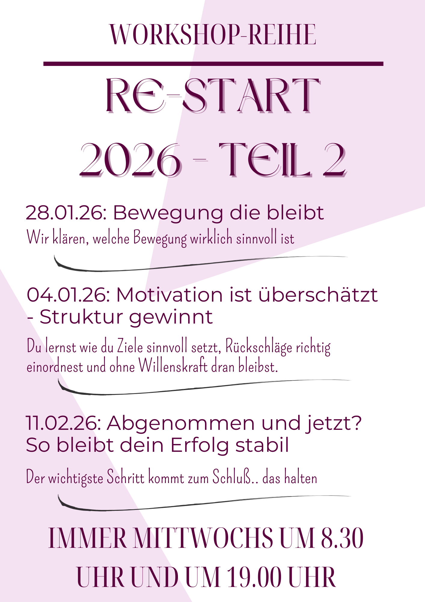 Dabei legen wir nochmal intensiv den Fokus auf das Thema Gewichtsreduktion und nachhaltiges Abnehmen.